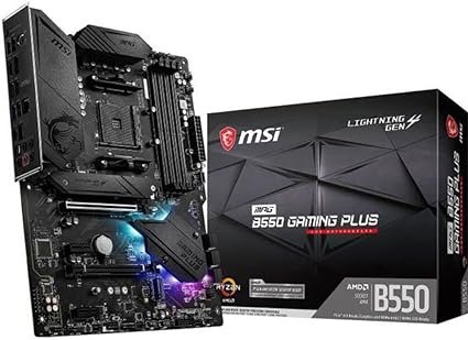 MSI MPG B550 Gaming Plus Carte Mère ATX – pour Processeurs AMD Ryzen 3ème Gén., AM4, DDR4 Boost (4400MHz/OC), 1x PCIe 4.0/3.0 x16, 1x PCIe 3.0 x16, 1x M.2 Gen4 x4, 1x M.2 Gen3 x4, LAN Gigabit, Noir